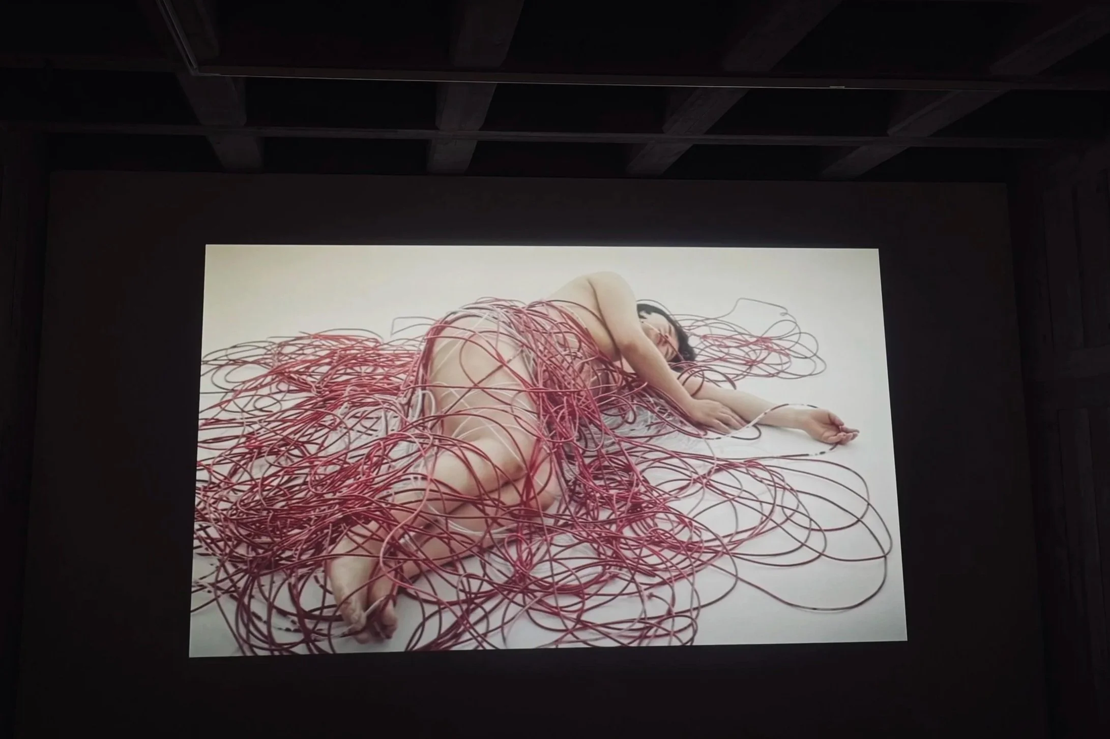 There is an undeniable resonance in Shiota's practice with Shibari, the Japanese art of rope binding, not as a direct influence she has claimed, but as a cultural current running beneath her work. Both practices involve the deliberate, patient act of wrapping and binding a body or object; both treat restraint as a form of reverence rather than restriction. Where Shibari suspends the body, Shiota suspends the objects once touched by the body.